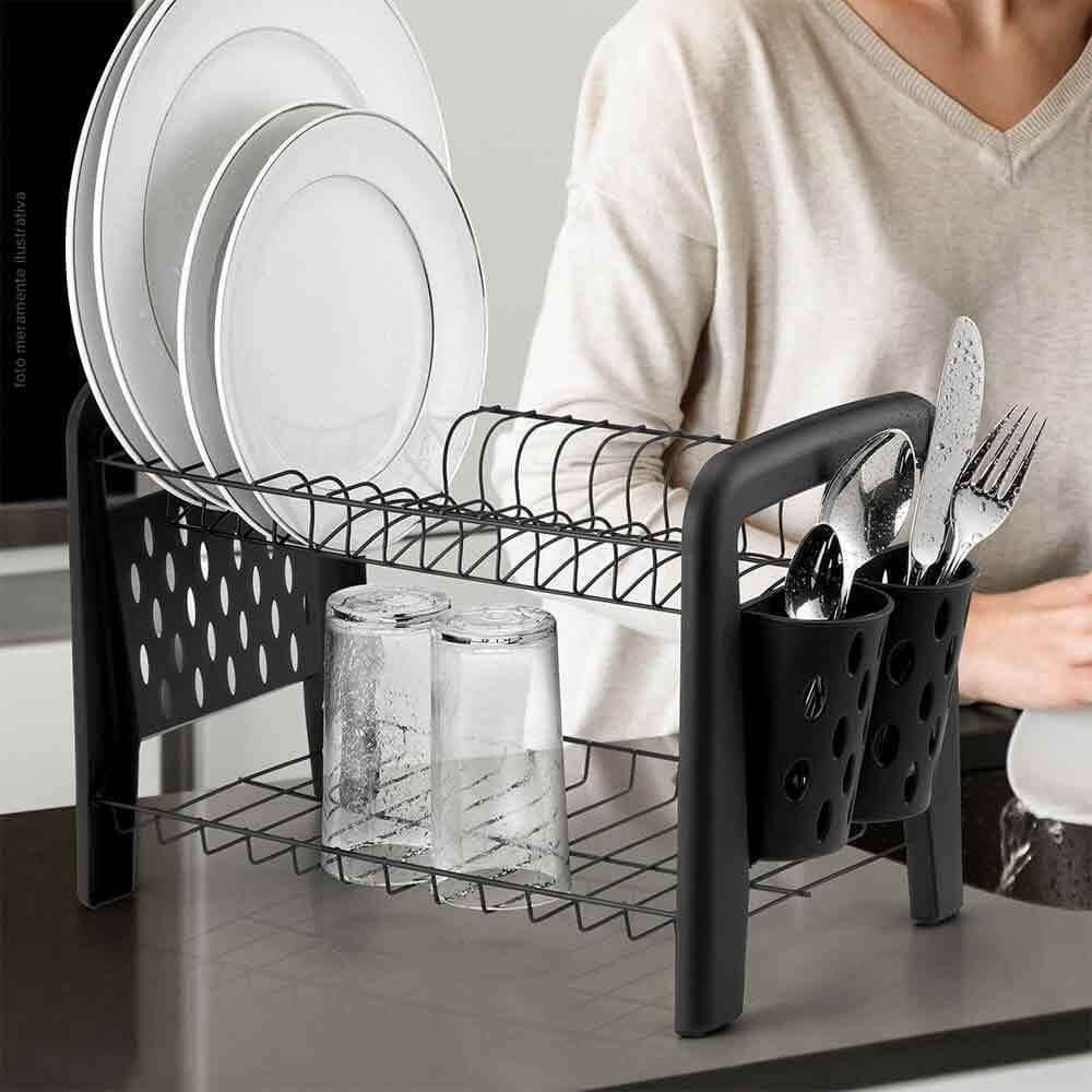 Com estrutura resistente e acabamento premium, ele mantém pratos, copos e talheres organizados enquanto secam de forma rápida e higiênica.