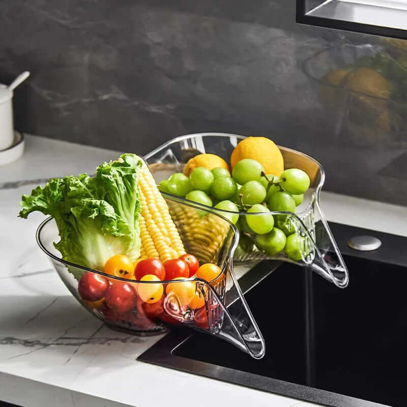 Otimize sua cozinha com o Escorredor de Alimentos Multifuncional! Seja para escorrer alimentos ou para decorar sua bancada, este item é ideal. A limpeza é fácil e pode ser utilizado para diversos alimentos, deixando sua cozinha mais bonita e funcional.