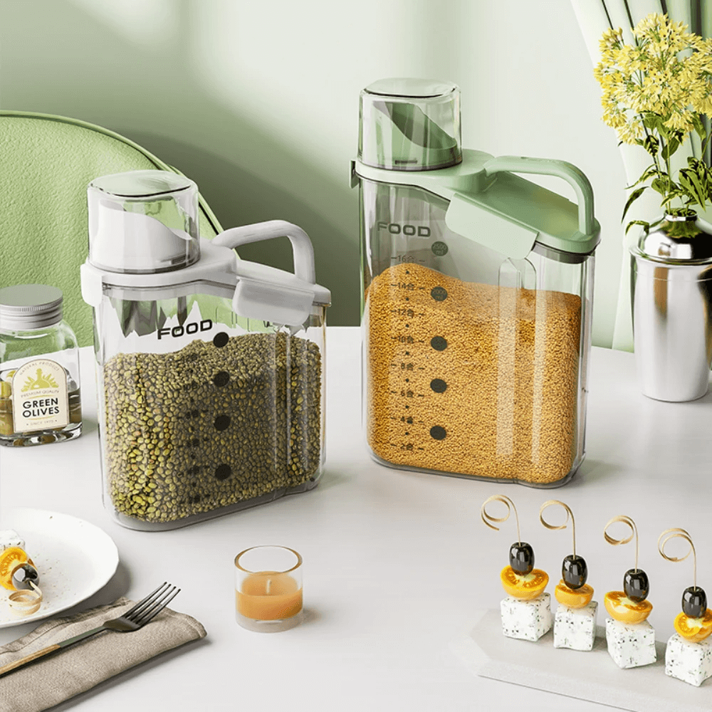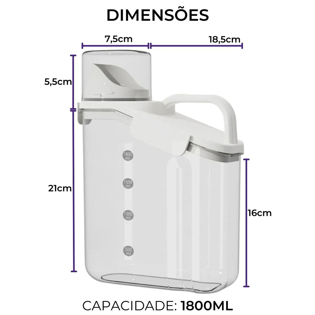 Versatilidade de Armazenamento: Além de cereais, grãos e outros alimentos, este pote é perfeito para uma variedade de produtos de limpeza. Ganhe espaço e mantenha tudo organizado!
