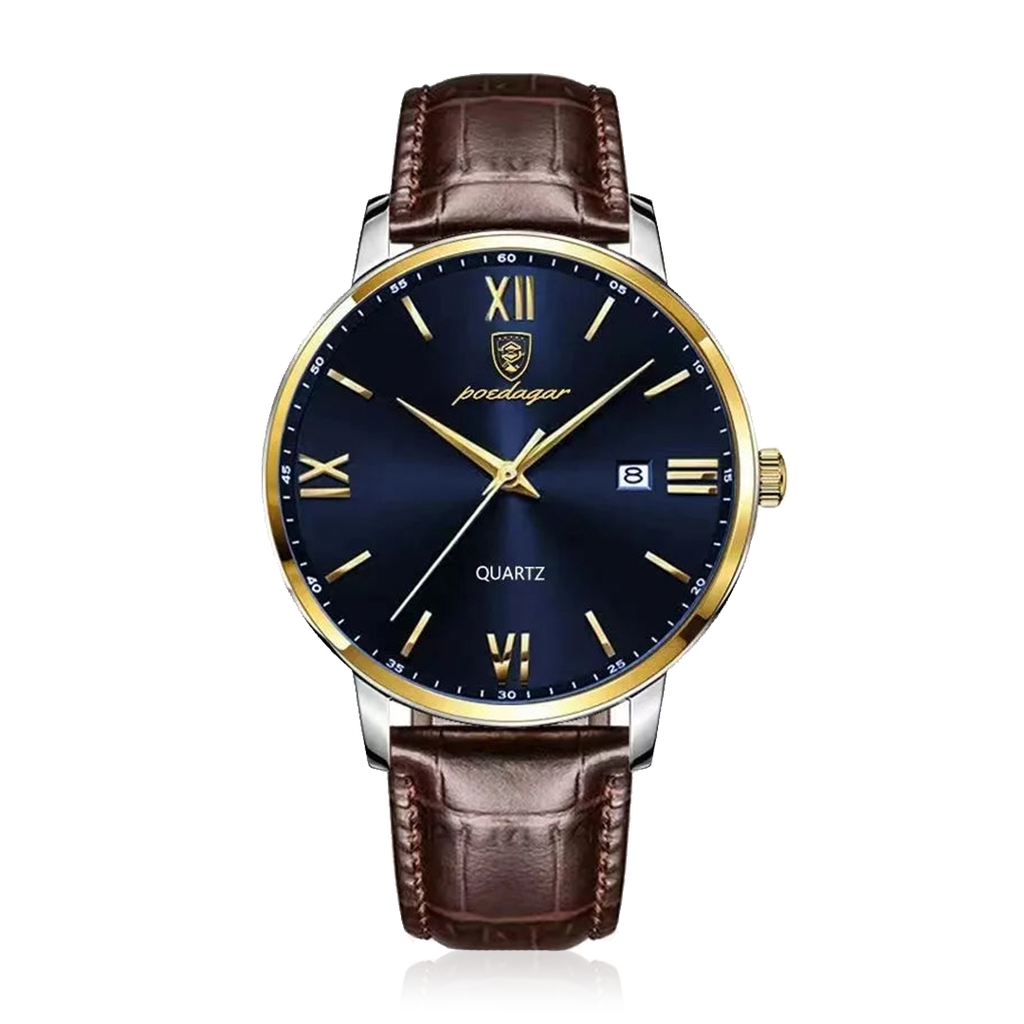 Material: Caixa em aço inoxidável, pulseira em couro legítimo, vidro em hardlex Ultra-resistente a arranhões e impactos.