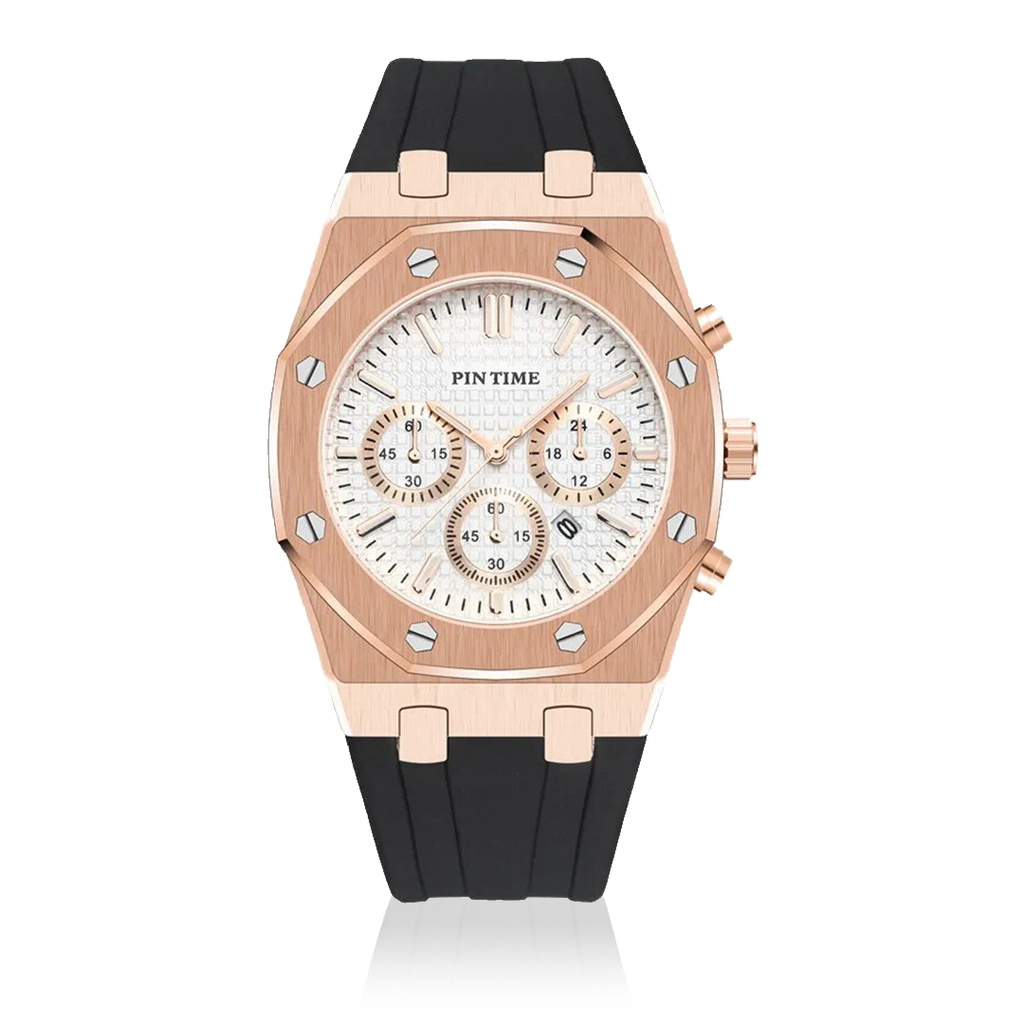 Construído inteiramente em Aço inox 904L com mostrador em vidro de Safira