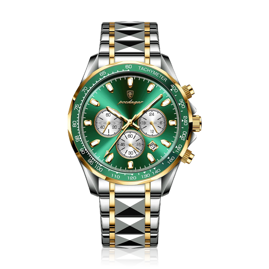 Material:Caixa e pulseira em aço inoxidável, vidro em Hardlex contra arranhões e impactos.