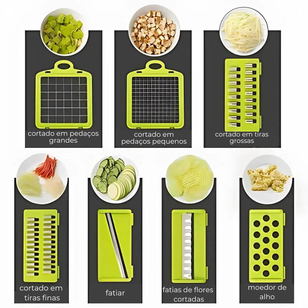 Chega de perder tempo com tarefas manuais! Torne seus preparos mais rápidos e eficientes com o UltraChef™ – Cortador e Fatiador Multifuncional 16-em-1.